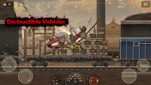 As a survivor, you must make all your efforts to drive to the west coast because there is a shelter to take non-zombies. You must try your best to get to the safe island. Of course, this game will be a great challenge of your driving experience. But no matter what may happen, you just cannot give up. There are a lot of zombies between you and your final freedom. So you must be fully prepared all the time. And it is your priority to build a really strong vehicle which is capable of turning the moving zombies into zombie corpses. The whole game is designed in a rather vivid way, because you can see that blood is spilling all over the place as soon as you hit the zombies with your car at a fast speed. And the whole scene is a little violent, but it is so fun. There are also other obstacles, including the wooden boxes and explosives. So you should first ignite the explosive by knocking the explosives really hard with your car first. In this way, you can save lots of efforts to kill all those enemies. When you ignite the explosives, you can just send all the zombies into the sky without lifting your finger, which is really awesome. And you just want to get farther and farther. It is impossible for you to stop. You just attempt to run over and over and kill more zombies to earn more cash. At the end of each round, you will have the golden chance to use your acquired cash to upgrade your vehicles. You should first upgrade your fuel capacity because if you have enough amount of fuel, you can drive faster and faster. It is also necessary for you to equip your vehicle with better tires for improved driving experience.