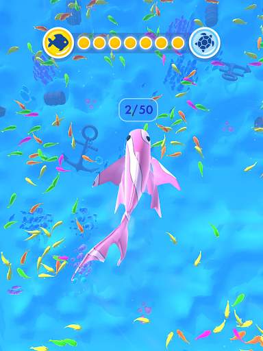 This is an amazing simulation game. Hyper Evolution is a really interesting game about eating and devouring smaller creatures to make your creature evolve and get stronger. The whole process is really addicting and satisfying. To some degree, it is of mental-healing effects. You will get a deep sense of satisfaction by devouring all the lower creatures. Once you devour enough amount of small creatures, you will become bigger. Eventually, you will become a totally different kind of creature.If you are already an apex predator, it is really fun for you to devour all the weak creatures without making any efforts. But even if you are small and not strong enough, you should always keep eating without stopping and you should always keep moving and exploring. It is really important for you to keep an eye on the large concentrations of food and ensure that you will devour all the shining food, because the shining food will give you extra points. The more you move, the better you will perform. All the glowing objects will give you an advantage. You should try your best to devour all the glowing objects which are usually scattered around. So while you are swimming around, you should never miss these glowing objects. Besides, you should remember to collect all the keys. By picking up the keys, you will manage to unlock chests which may contain extra coins and some parts of special creatures, including some body parts of a beautiful mermaid.